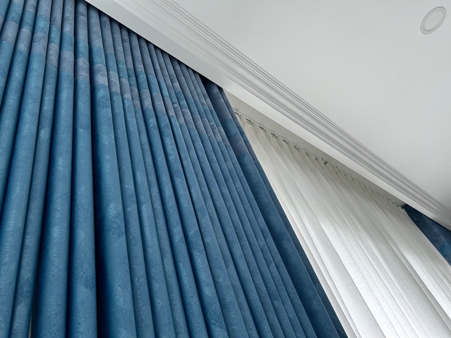 Rèm Vải 2 Lớp & Rèm Cầu Vồng Xanh Cobalt: Giải Pháp Tinh Tế Cho Biệt Thự Nhà Phố